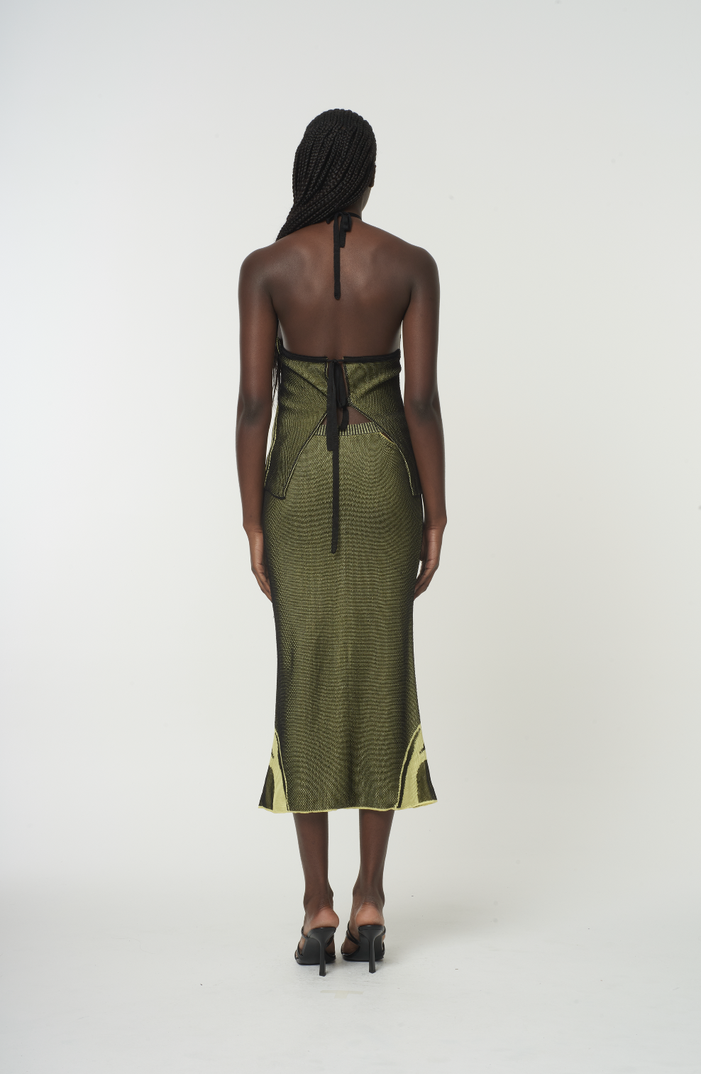 This Halter top features a backless design which can be worn back to front for a open front. With two backstraps to control fit. As well as a Kissing boys lace motif.